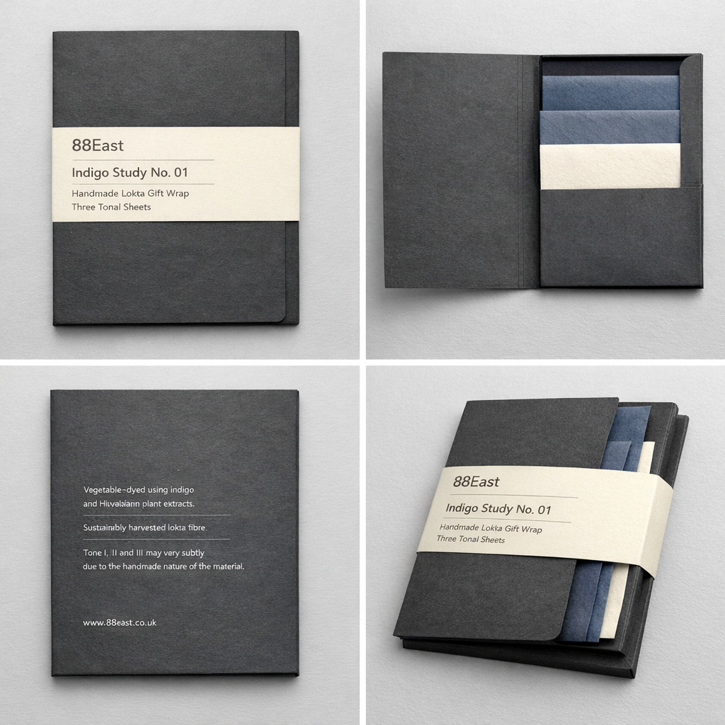 Each pack of 88East lokta paper is handmade in Nepal by certified Fair Trade artisans. Vegetable dyed and unlike anything available in a supermarket. One careful sheet at a time.